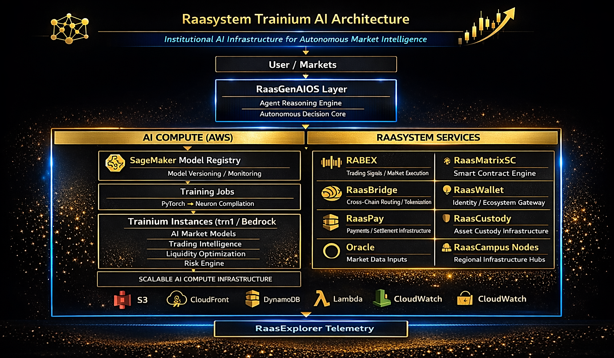 Raasystem establishes a new class of AWS-Native Digital Infrastructure — Autonomous Economic Infrastructure — where artificial intelligence securely orchestrates economic systems, coordinates digital assets, and enables scalable, multi-region financial operations across global markets.